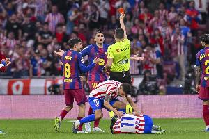直红改黄!马竞1-2巴萨裁判录音:马丁先踢到球后踩踏 是正常动作